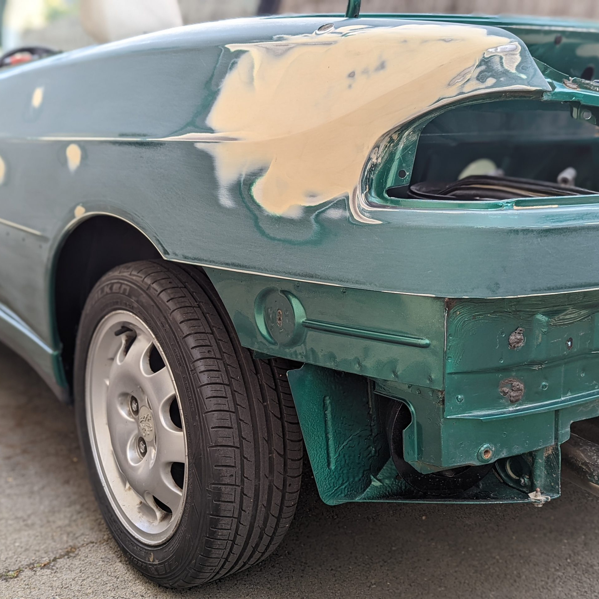 Il m’a (fortement) été conseillé d’apprêter intégralement la carrosserie pour une peinture intégrale. Cette étape de la restauration a été pour moi assez longue et fastidieuse pour différentes raisons que je vais essayer de partager en 2 articles.