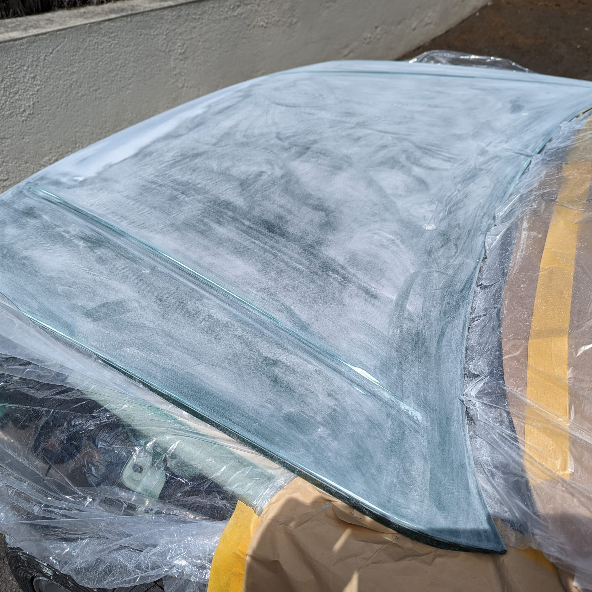 Même si la carrosserie a déjà bien été dégraissée par plusieurs lavages méticuleux au produit vaisselle, je réitère l’opération dans la cabine avec un dégraissant anti silicone un peu plus puissant jusqu’à ne plus avoir de trace sur mon chiffon (blanc idéalement).
