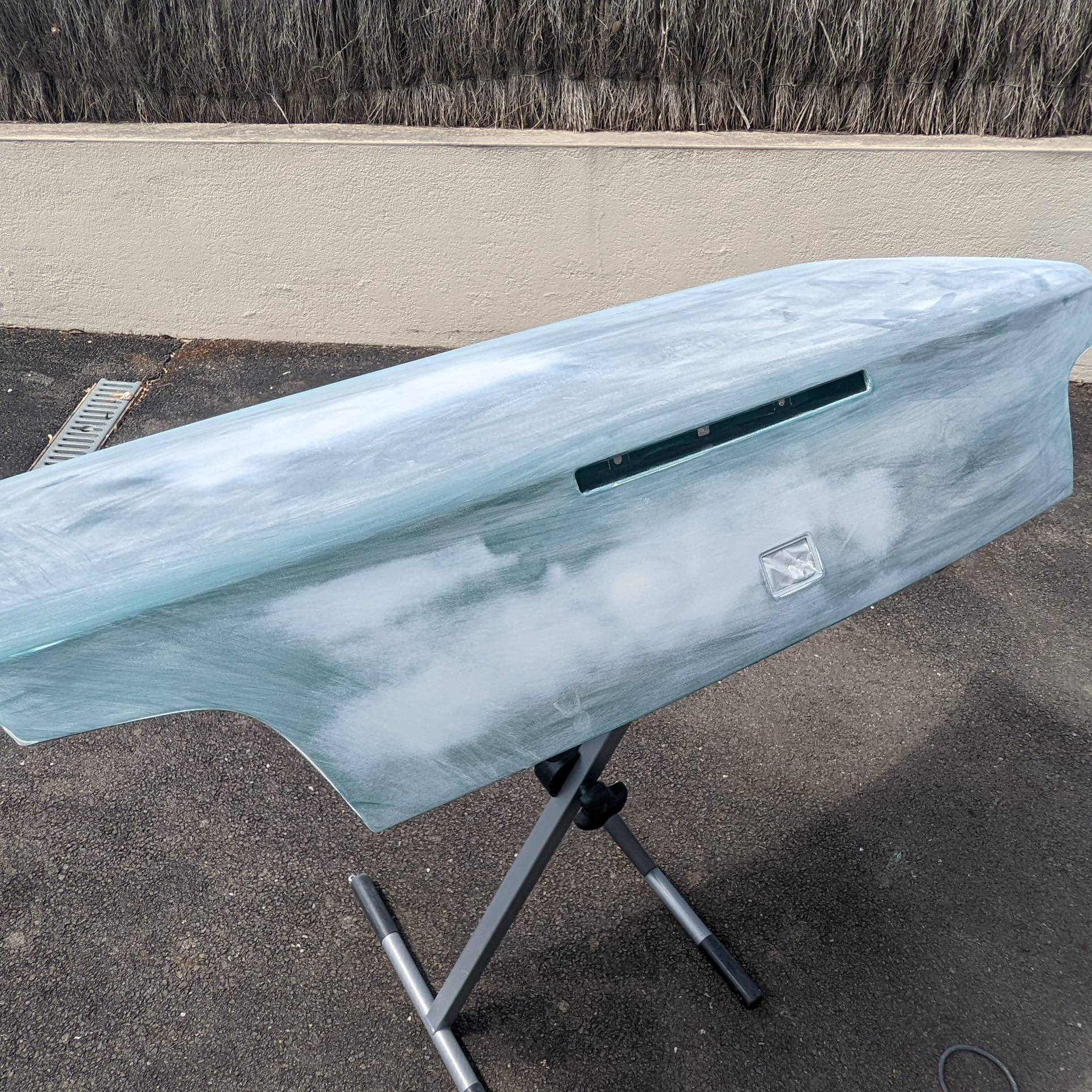 Avant d’attaquer le masquage complet, je prépare la carrosserie (en extérieur pour ne pas faire rentrer de poussière dans ma cabine).