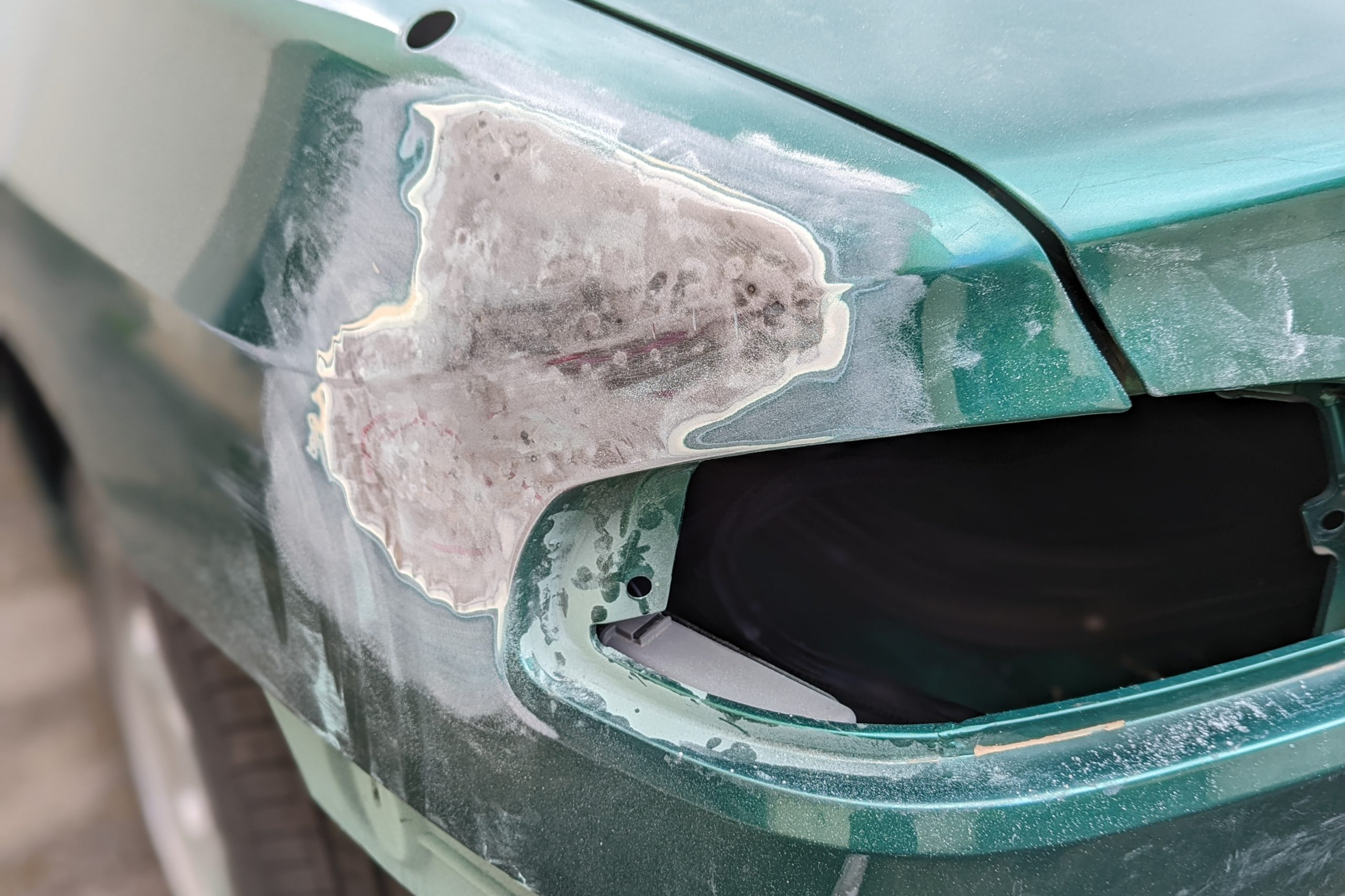 Carrosserie débosselée et redressée, j'attaque maintenant la pose du mastic et le ponçage. L'objectif est de redonner…
