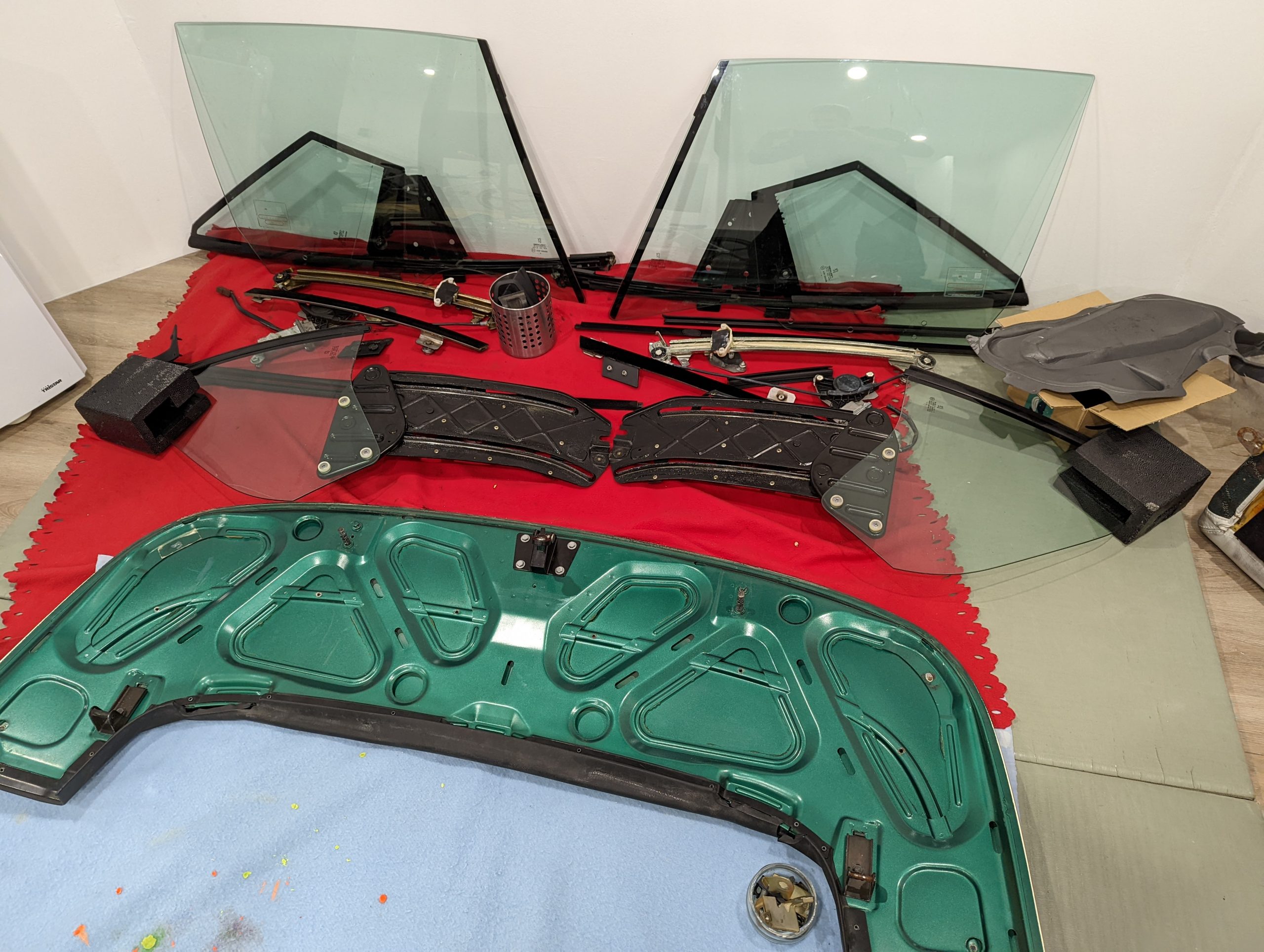 Facile à démonter mais beaucoup moins à remonter (notamment les vitres arrières qui nécessitent un réglage très fastidieux pour s’insérer à nouveau dans la capote), elles avaient également besoin d’un bon nettoyage et d’une bonne nouvelle couche de graisse au lithium.