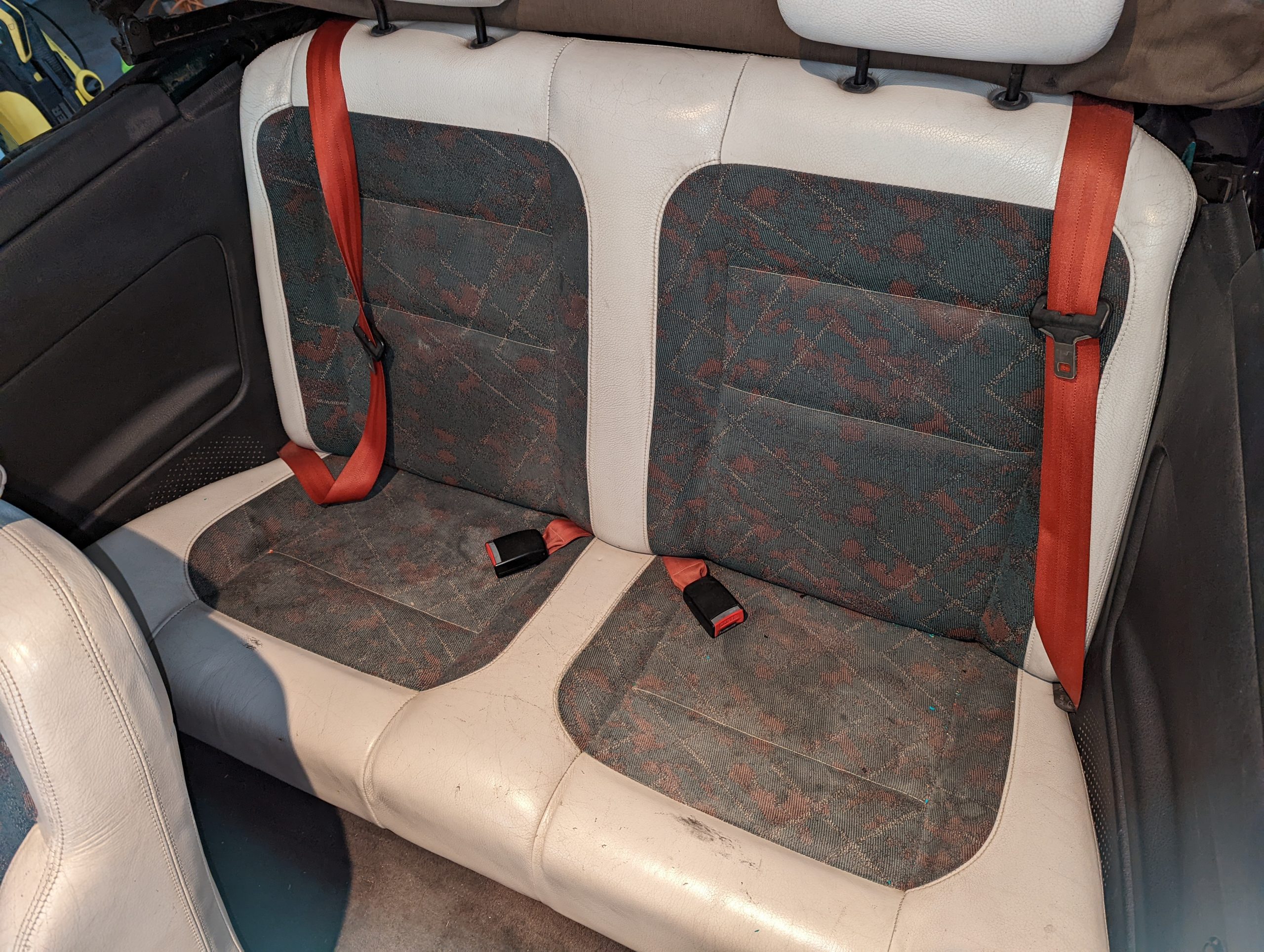 Comme en témoigne la saleté retrouvée sous la banquette, cette voiture a vécu décapotée pendant quelques longues années (en même temps, vous me direz que c’est le principe d’un cabriolet).