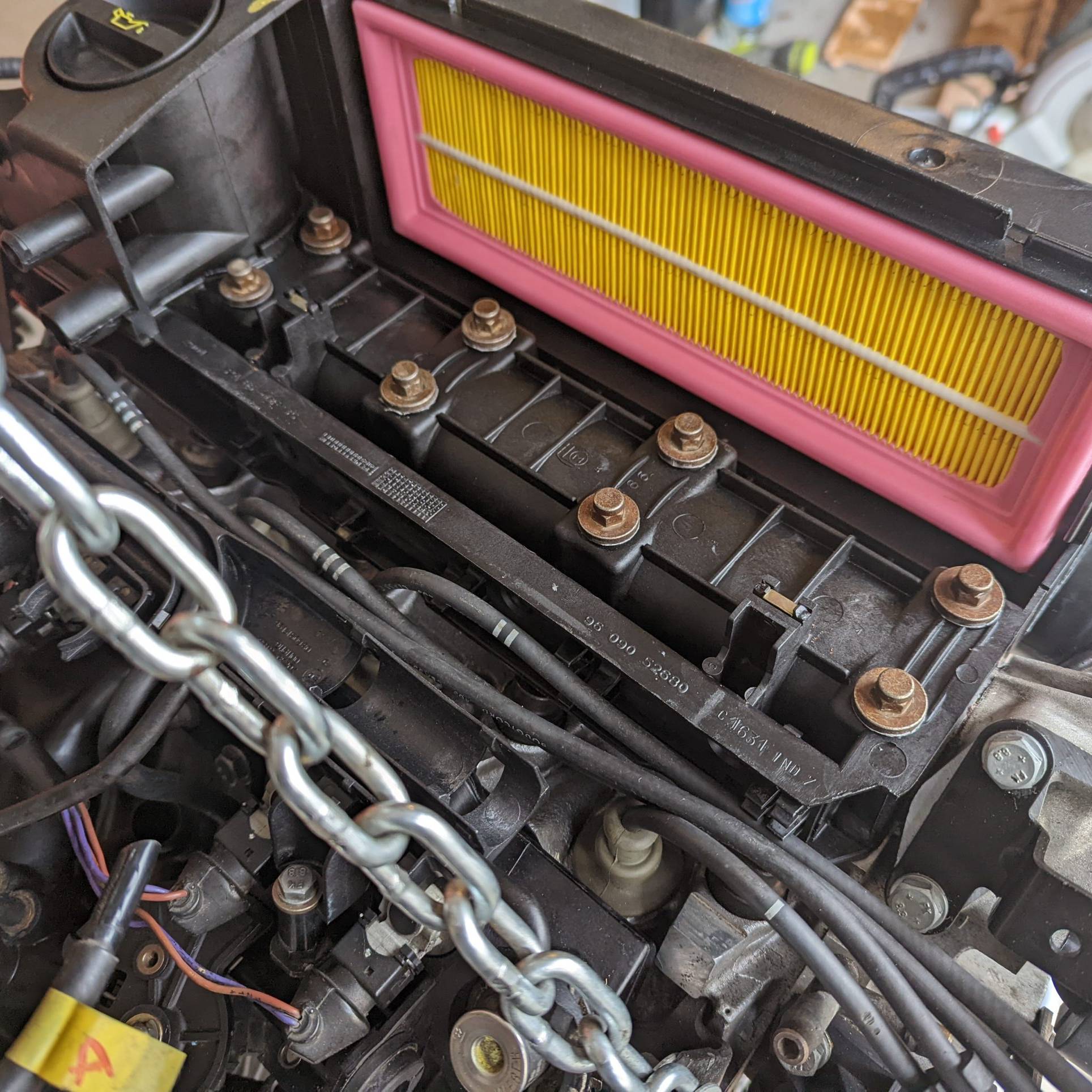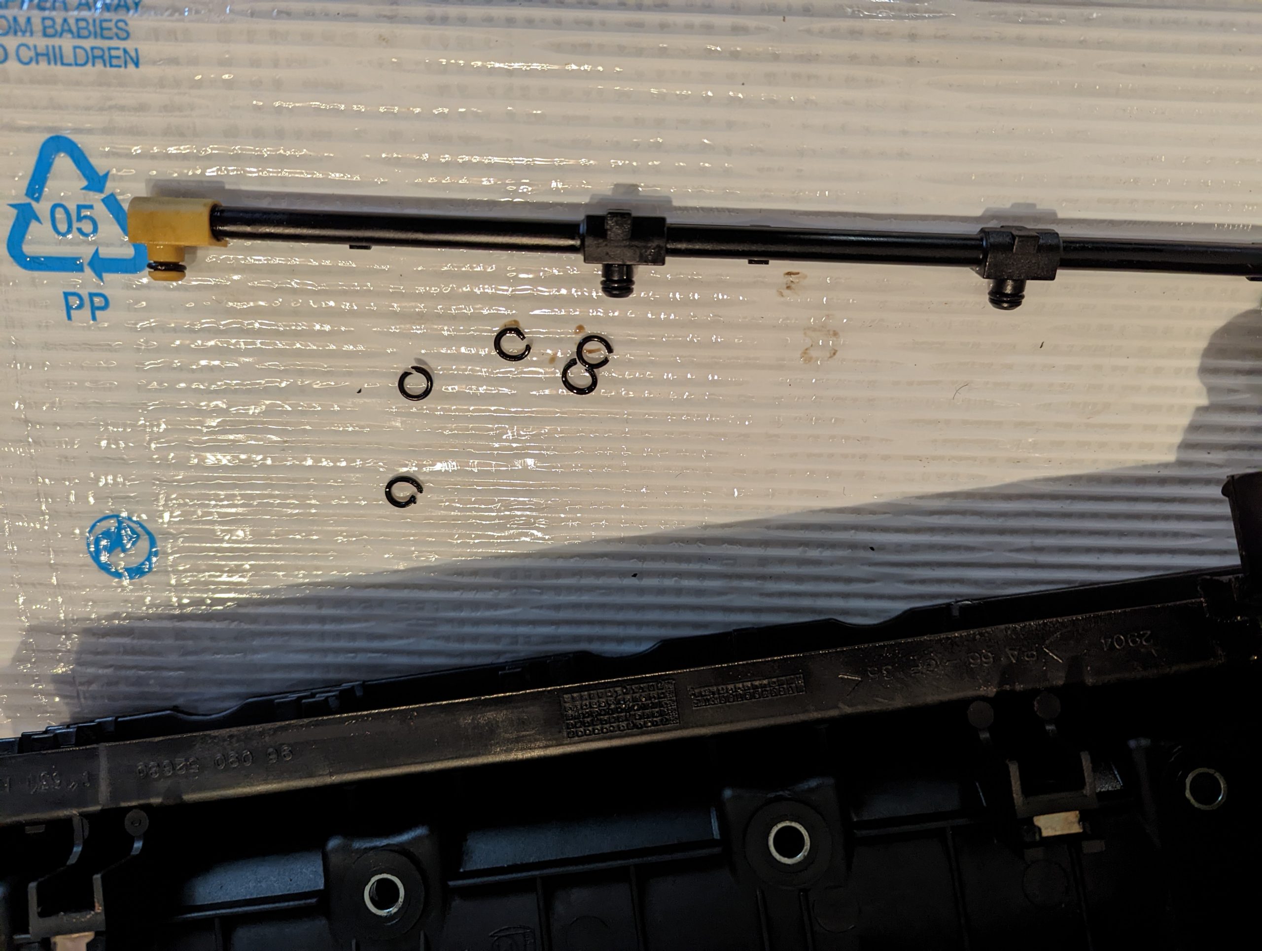A noter que j’en ai profité pour remplacer les 5 joints toriques sur la rampe de graissage. Ils étaient cuits.