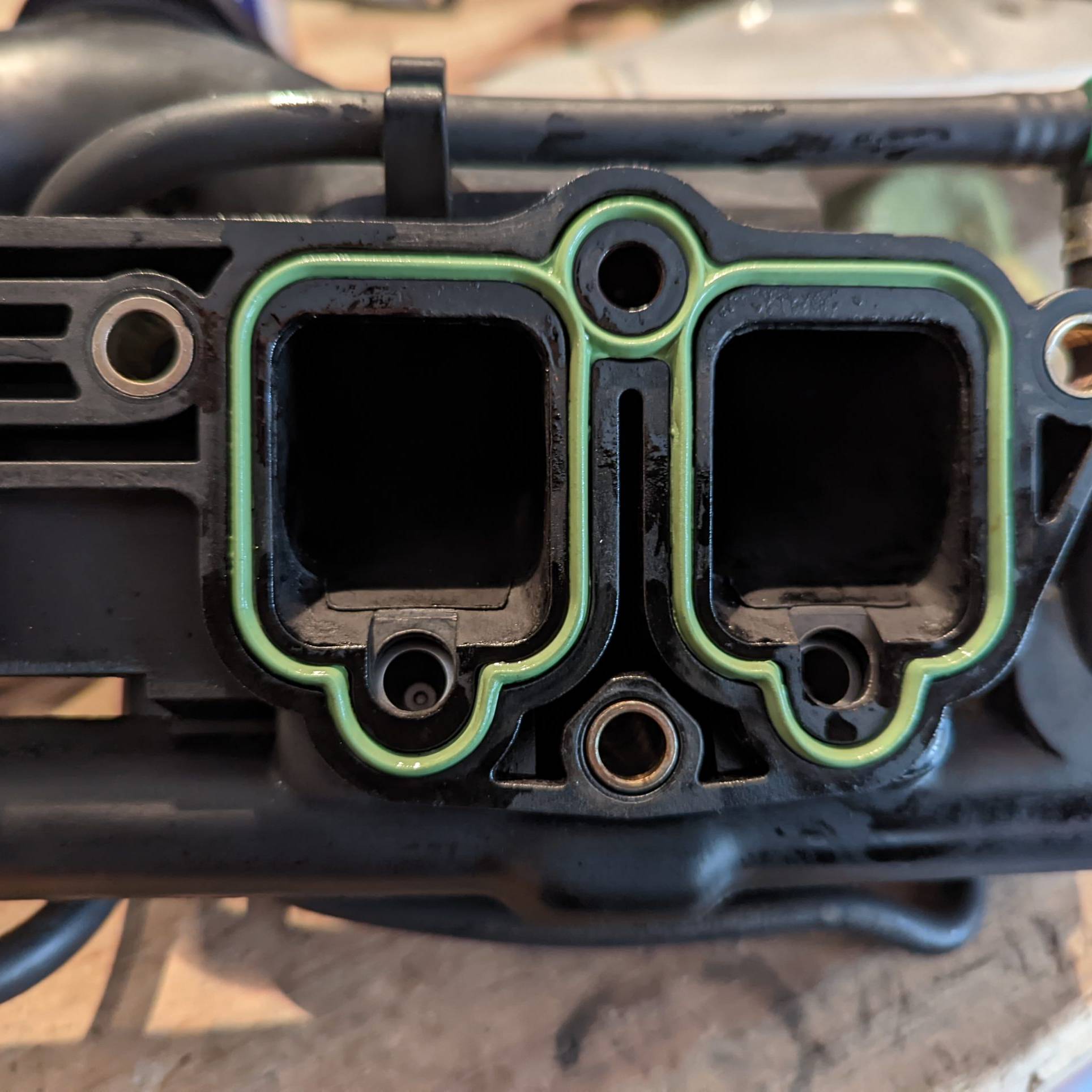 Je commence par bien nettoyer les résidus d’huile et de joints au niveau de la rampe d’injection. Pour cela, j’ai utilisé un grattoir en plastique (pour ne surtout pas rayer la surface) puis j’ai parfaitement dégraissé à l’acétone. On repose ensuite le joint neuf.