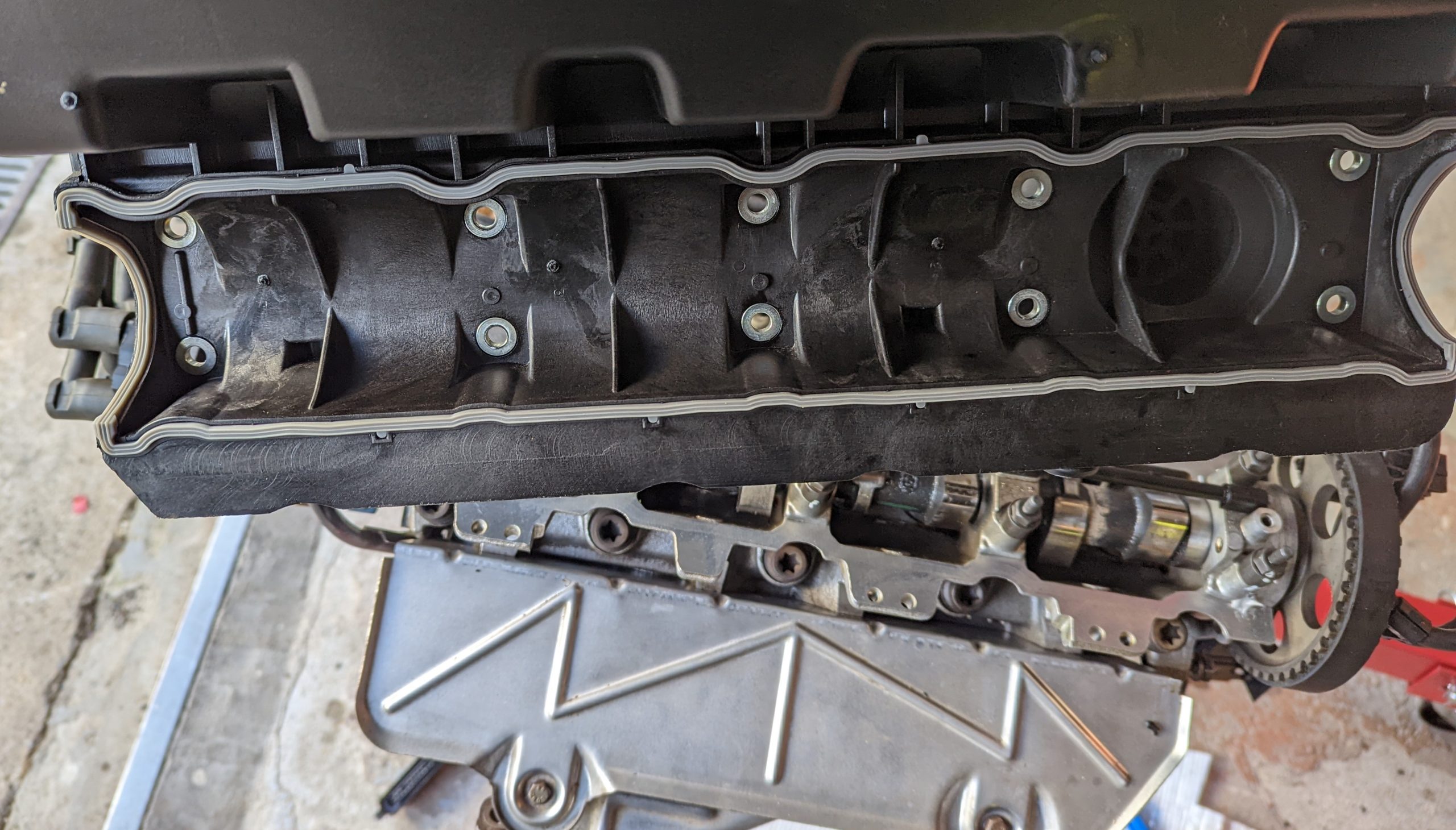 Même principe que pour le collecteur d’admission. Je commence par déposer l’ancien joint, je gratte avec une spatule en plastique la surface, puis je dégraisse parfaitement la surface et l’emplacement du joint du couvre-culasse.
