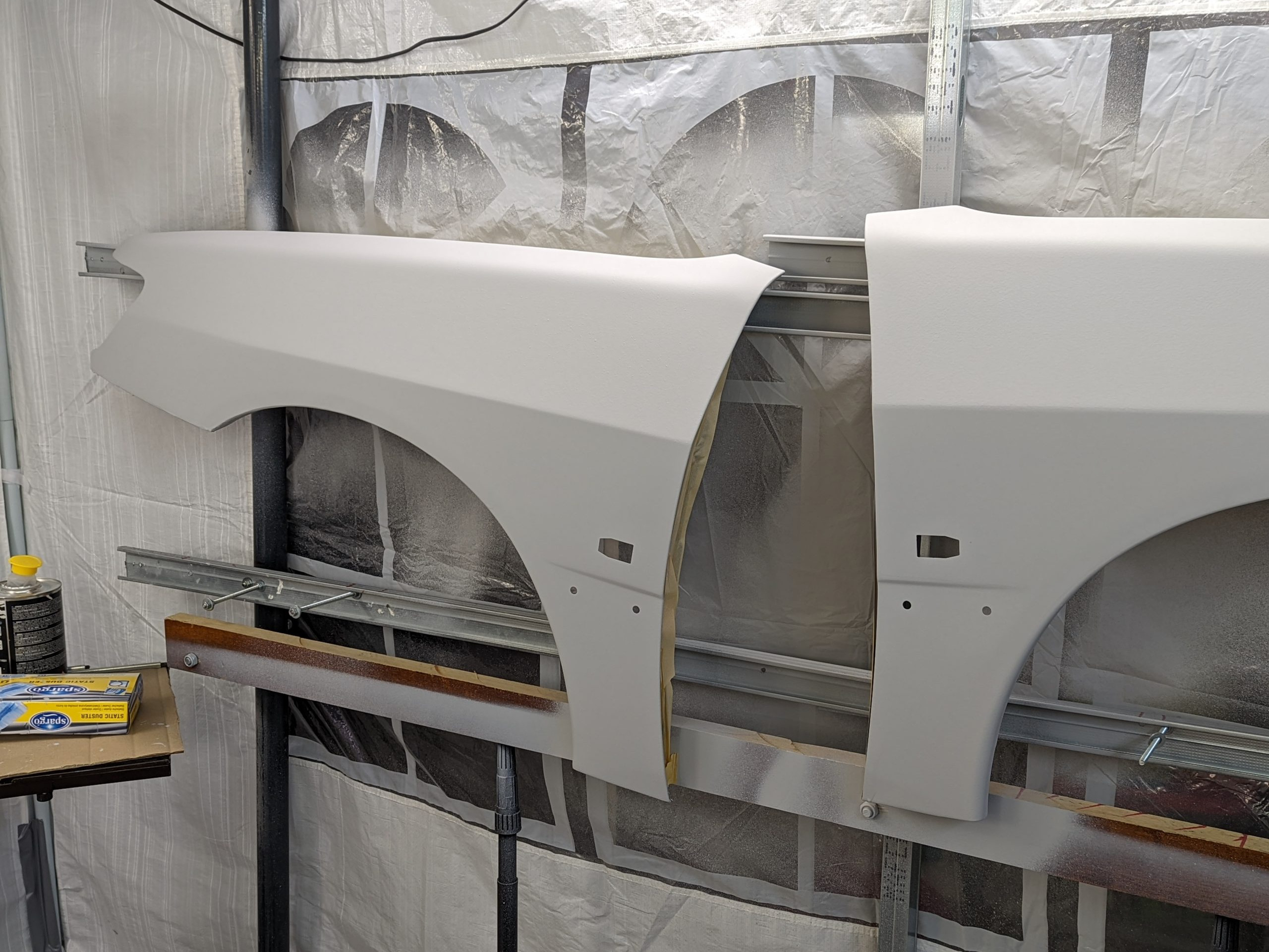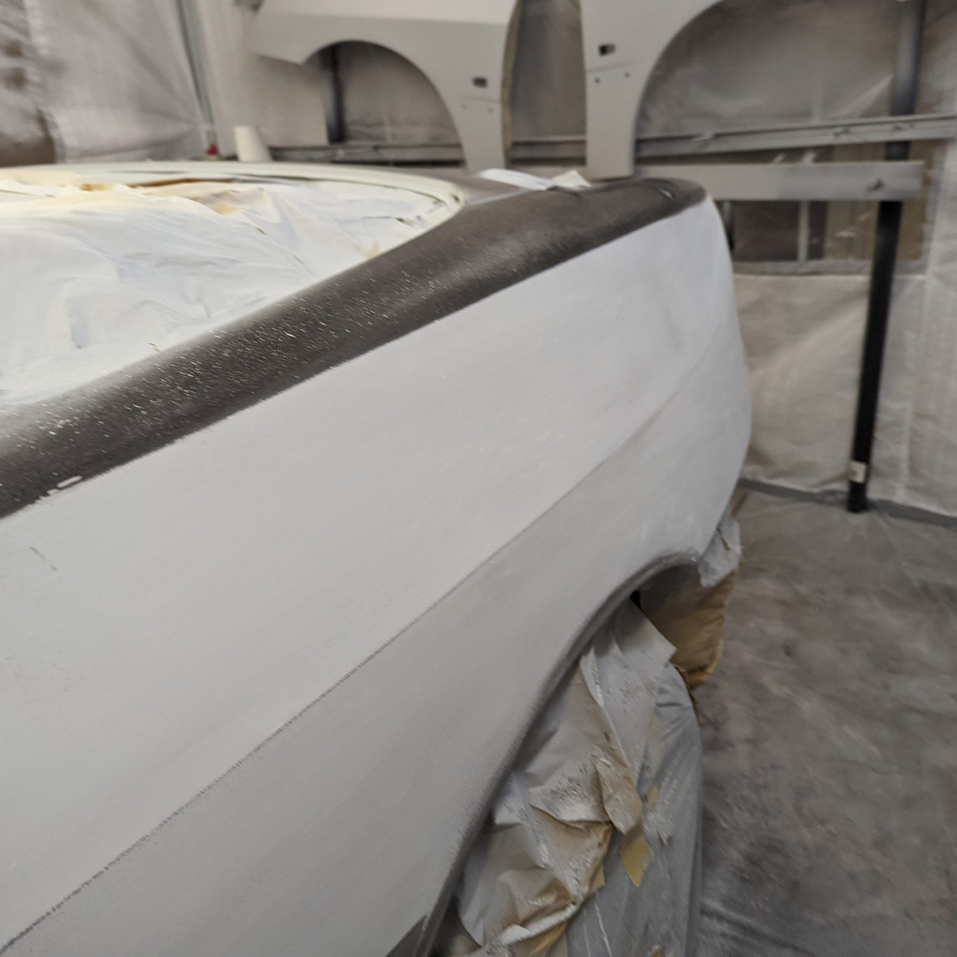 Deuxième partie dédiée à la pose de l’apprêt avant de l’envoyer en carrosserie pour lui redonner sa teinte d’origine.