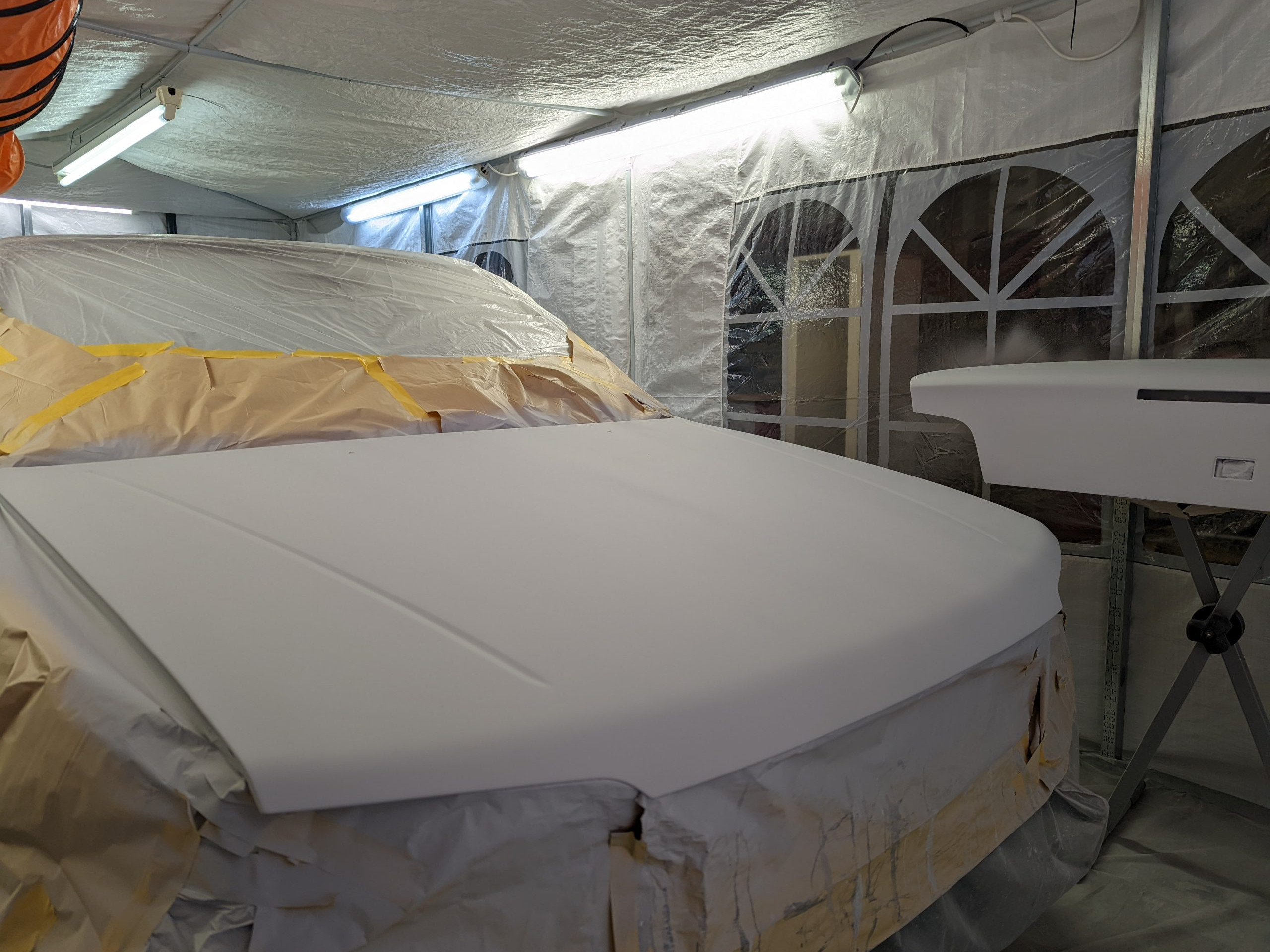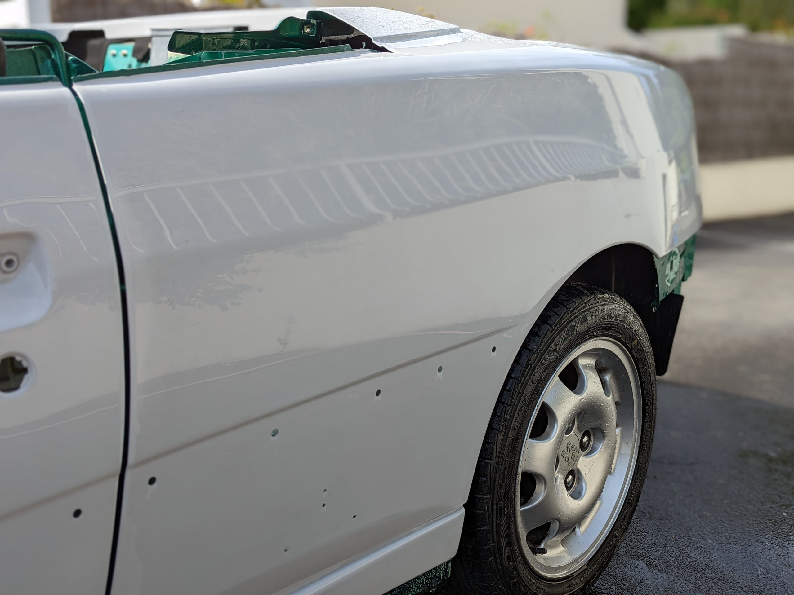 J’ai longuement hésité (j’y reviendrai dans le prochain article) à peindre la voiture moi-même mais j’ai finalement pris la décision de l’apporter chez un carrossier.