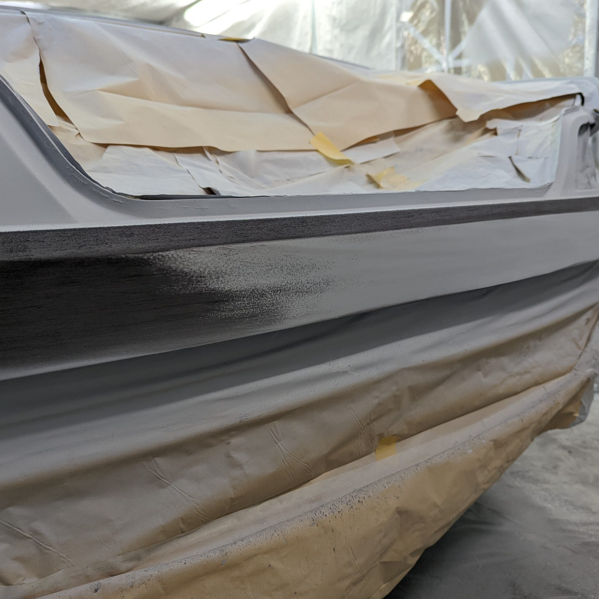 Ponçage à sec de l’apprêt au grain P500 puis finalisation à l’eau au P800.