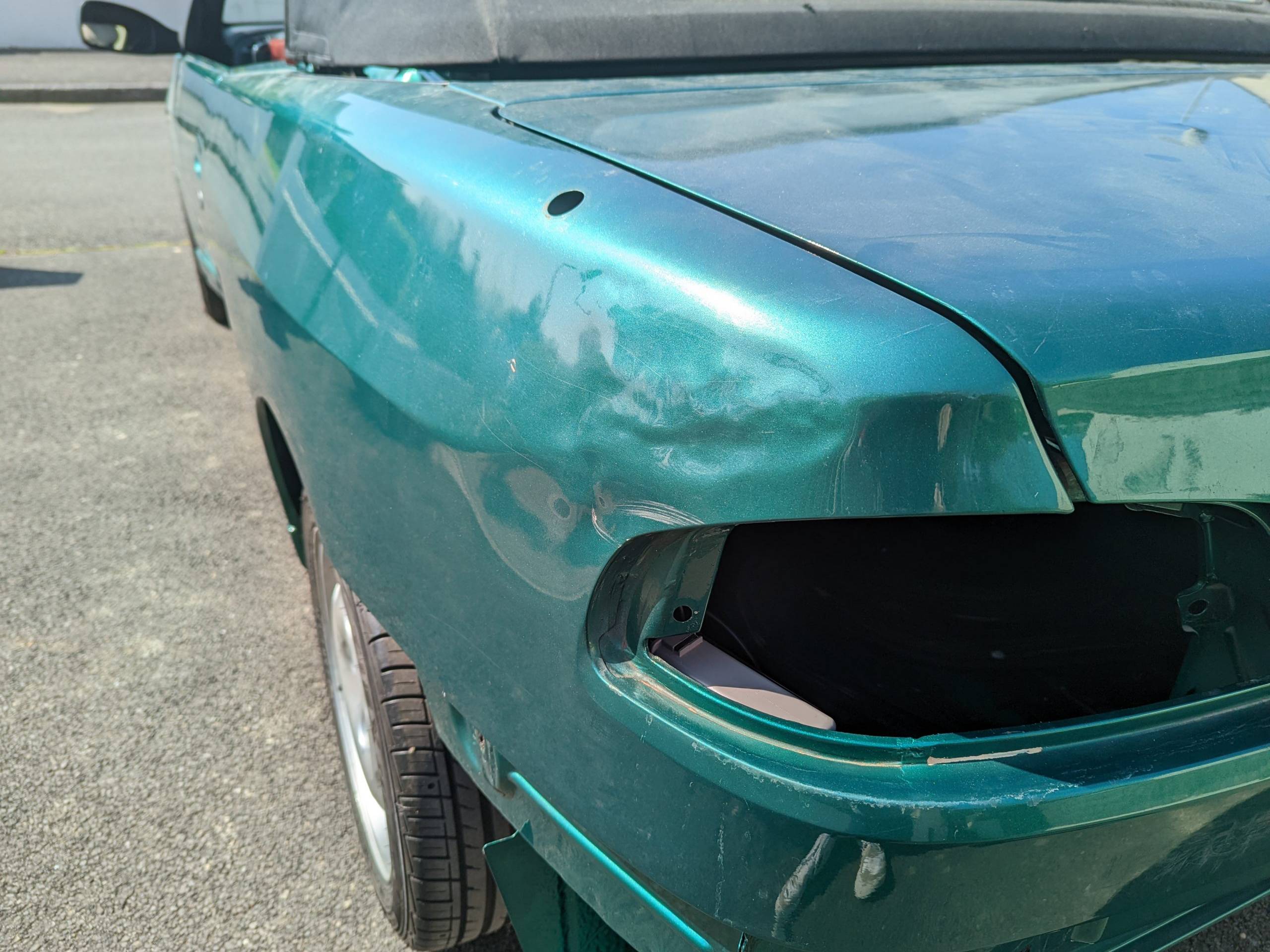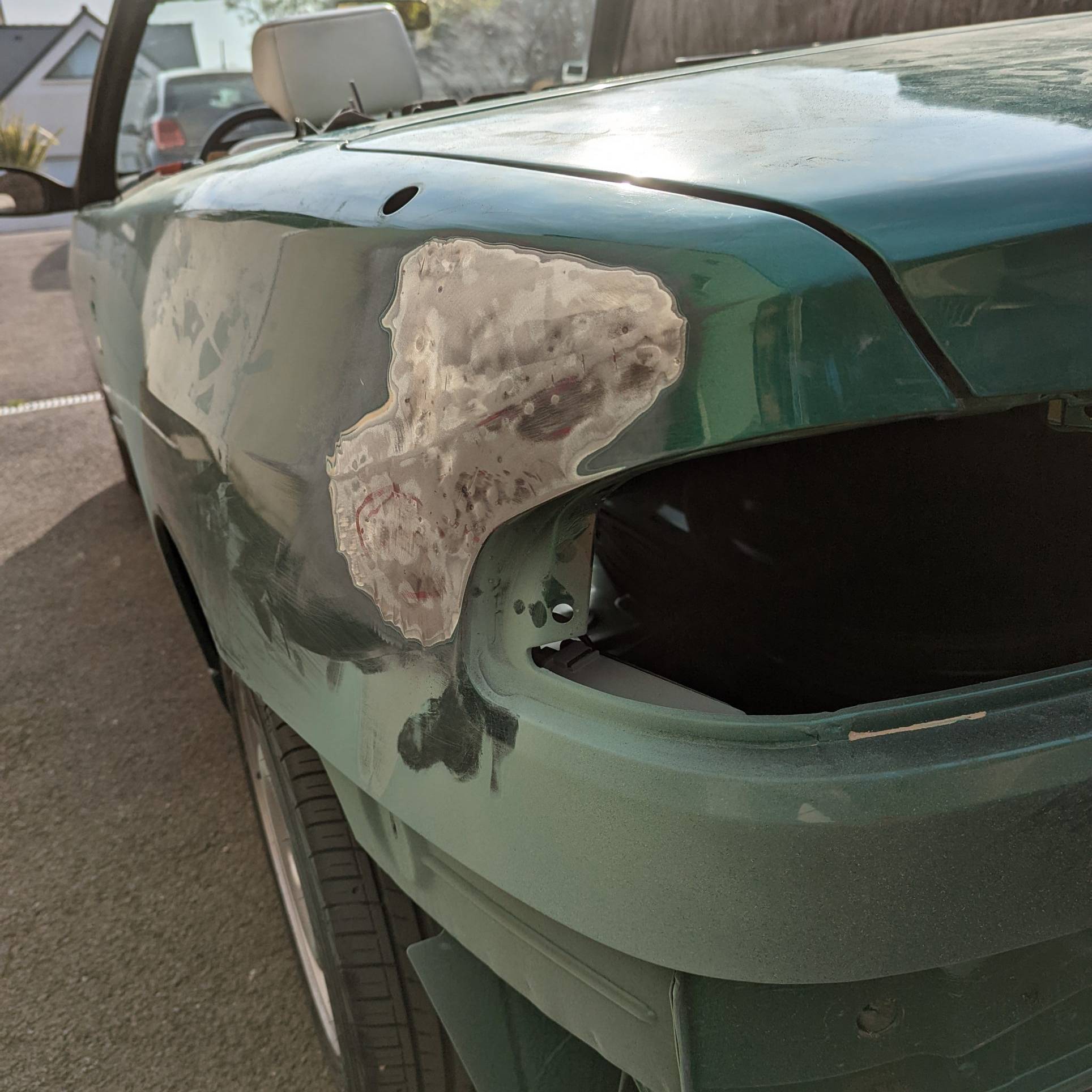 Carrosserie débosselée ! Prochaine étape, pose et ponçage du mastic.