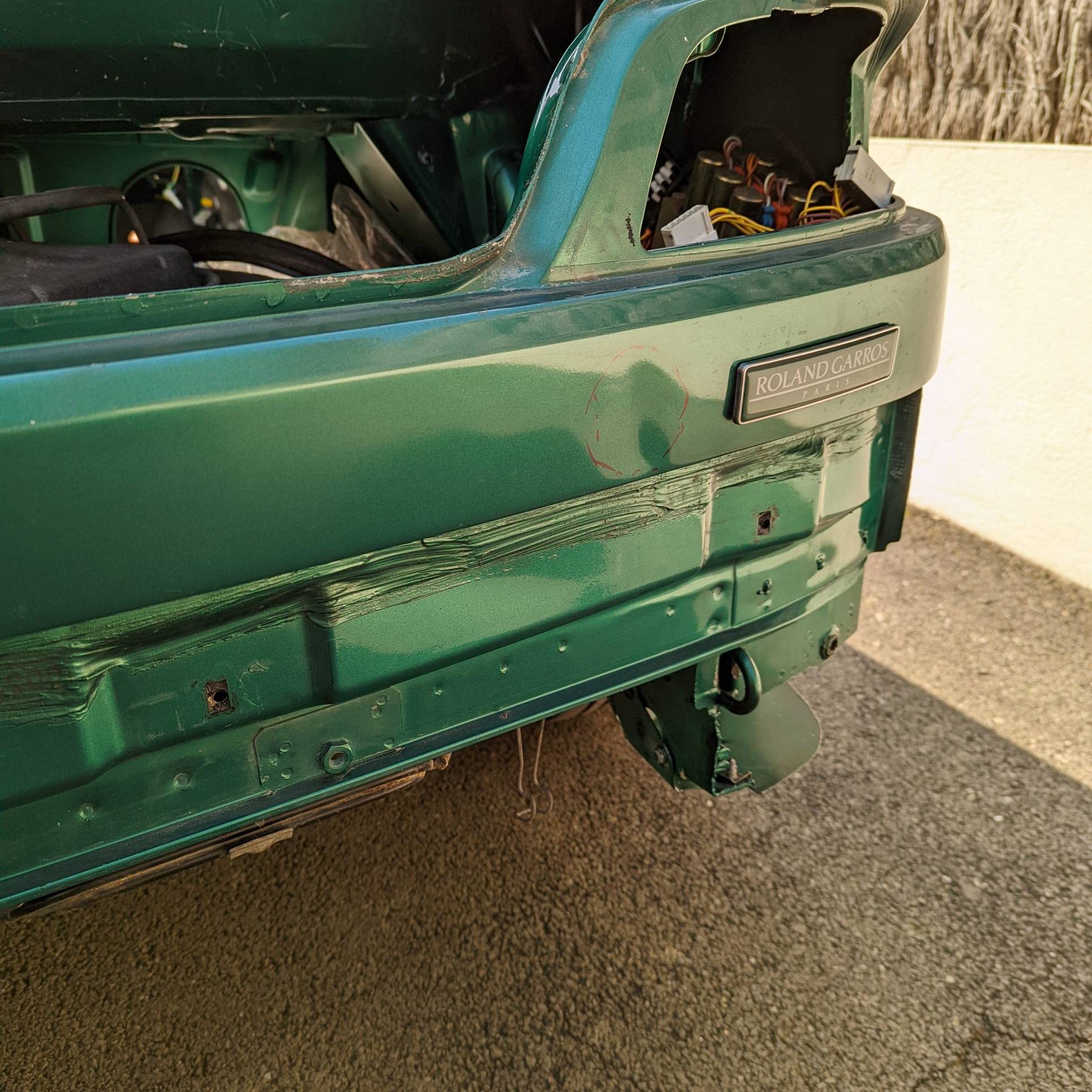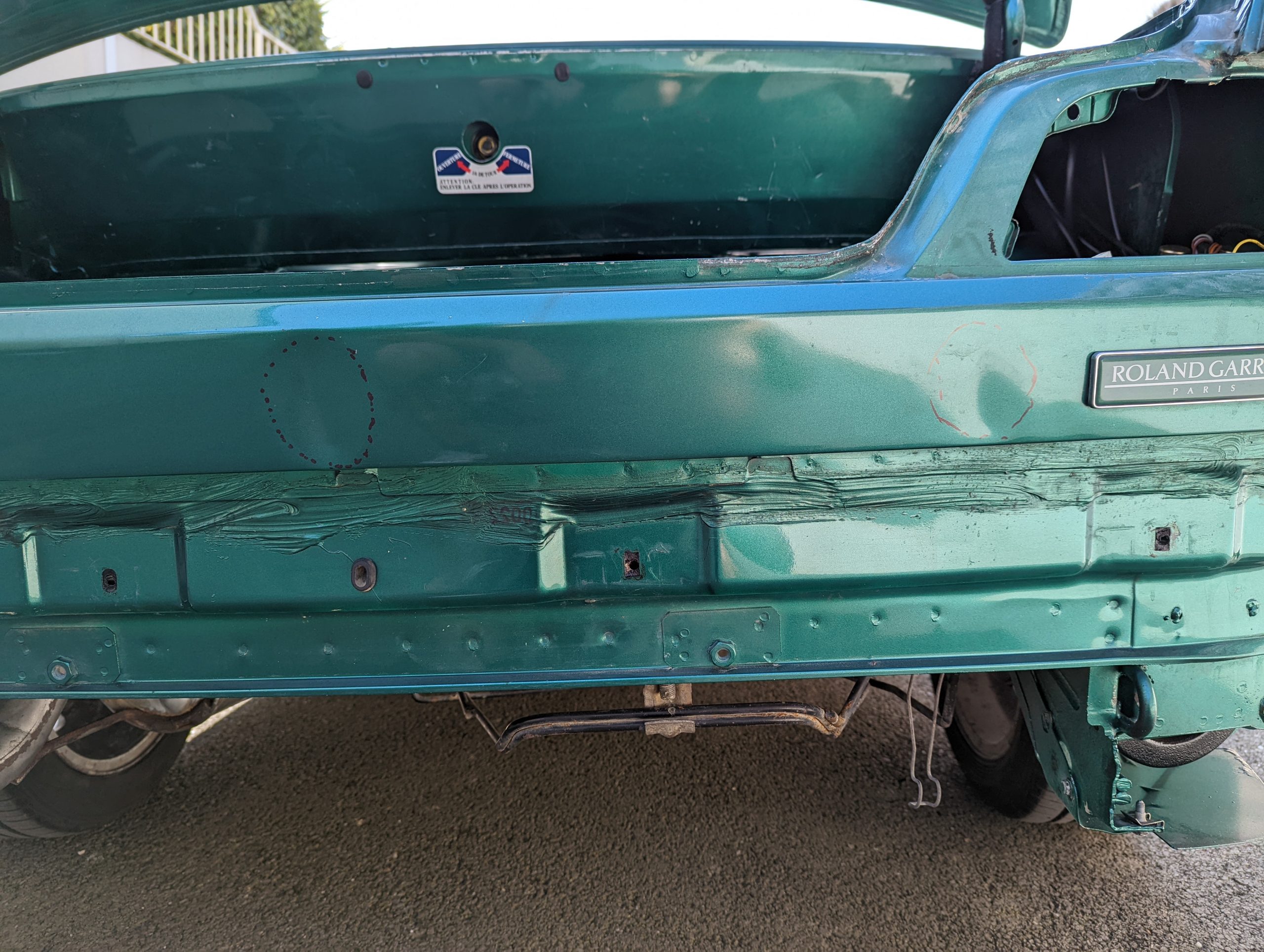 A l’heure actuelle, je ne sais pas encore jusqu’où j’irai dans cette étape, c’est-à-dire m’occuper simplement de la préparation pour confier la peinture et le vernissage à un carrossier ou tenter d’aller au bout tout seul.