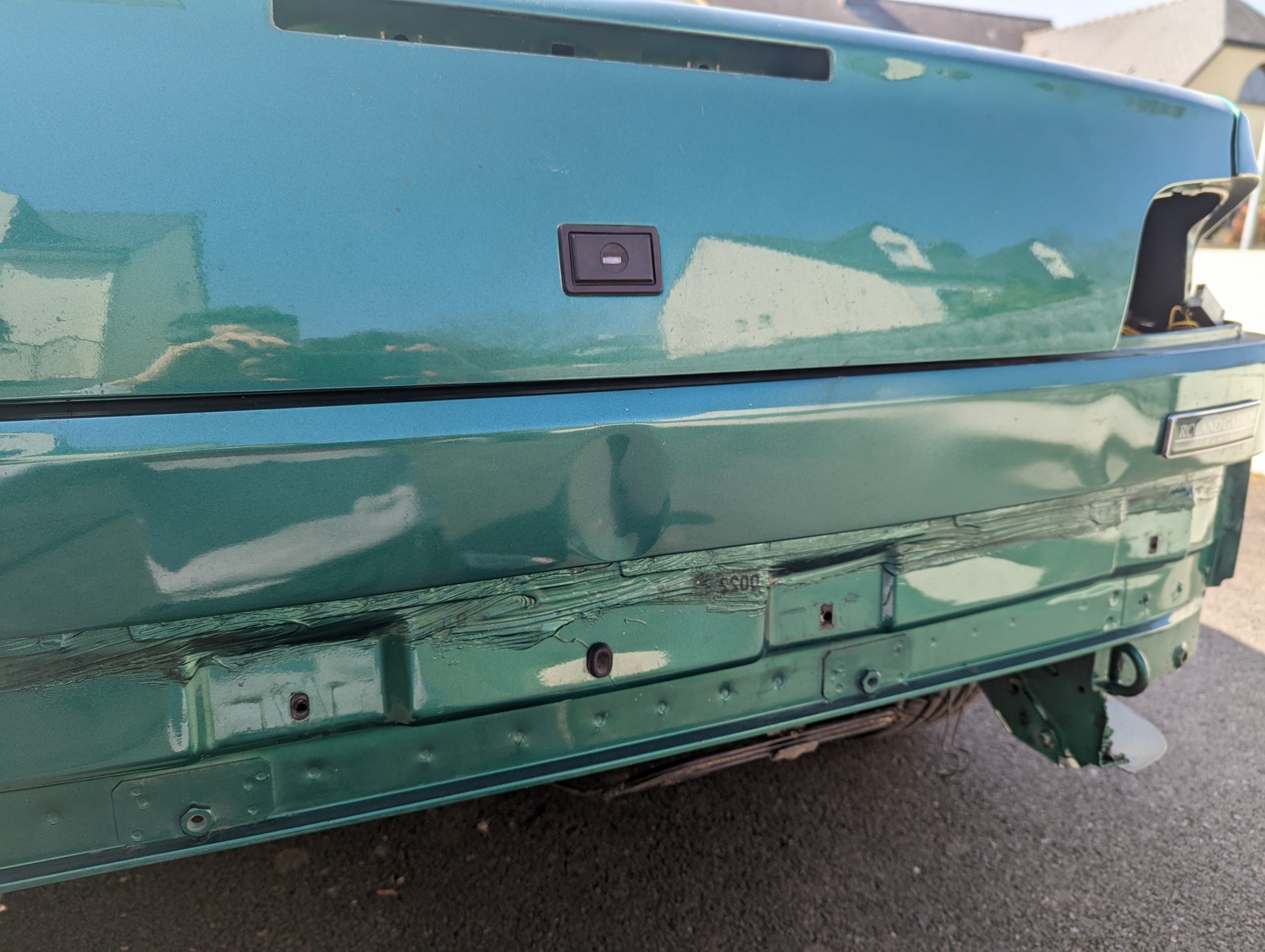 Carrosserie débosselée ! Prochaine étape, pose et ponçage du mastic.