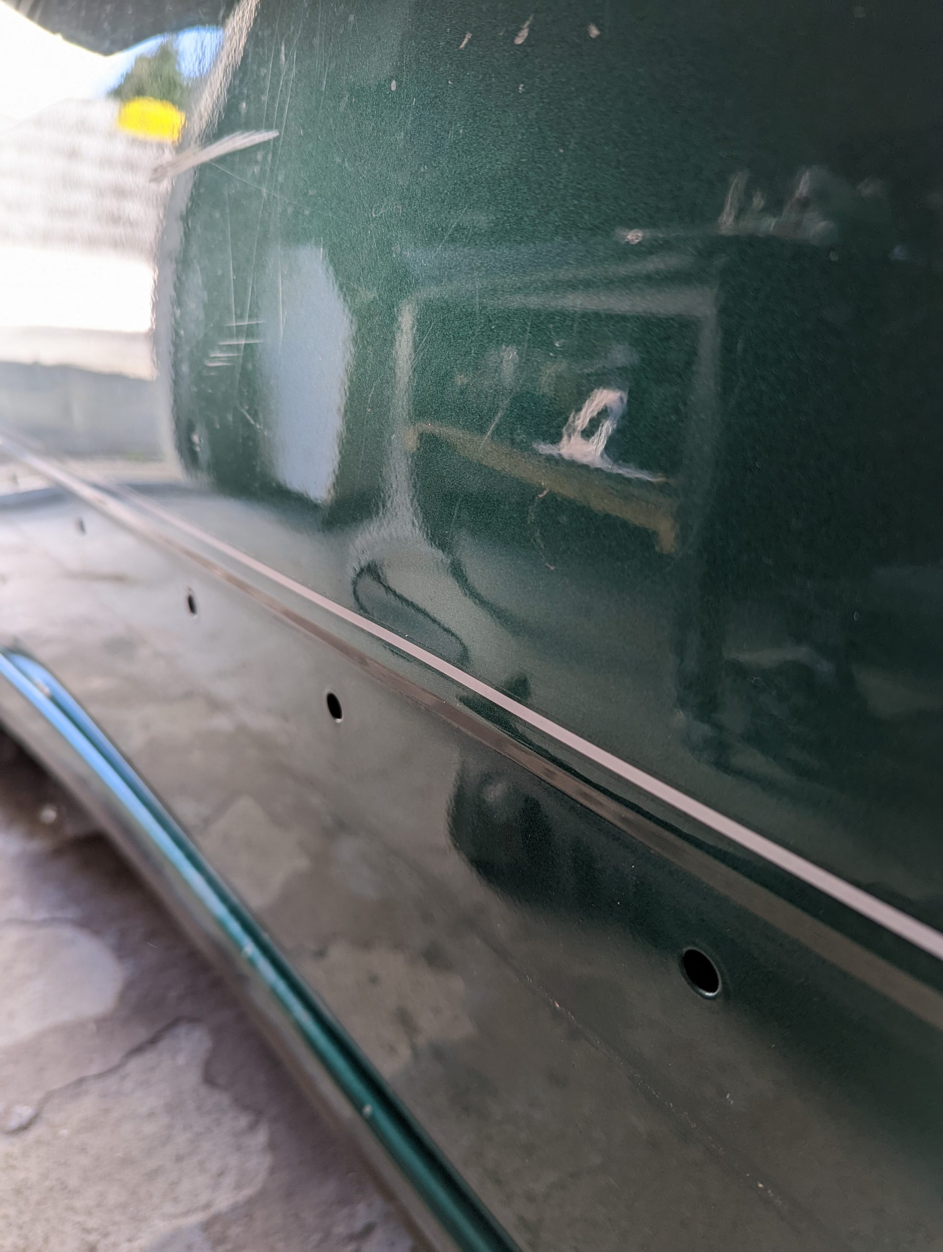 Comment vais-je redresser ça.. La tôle est quand même fortement enfoncée et même au tire-clou, j’ai peur qu’il soit impossible pour moi de redresser ça proprement.
